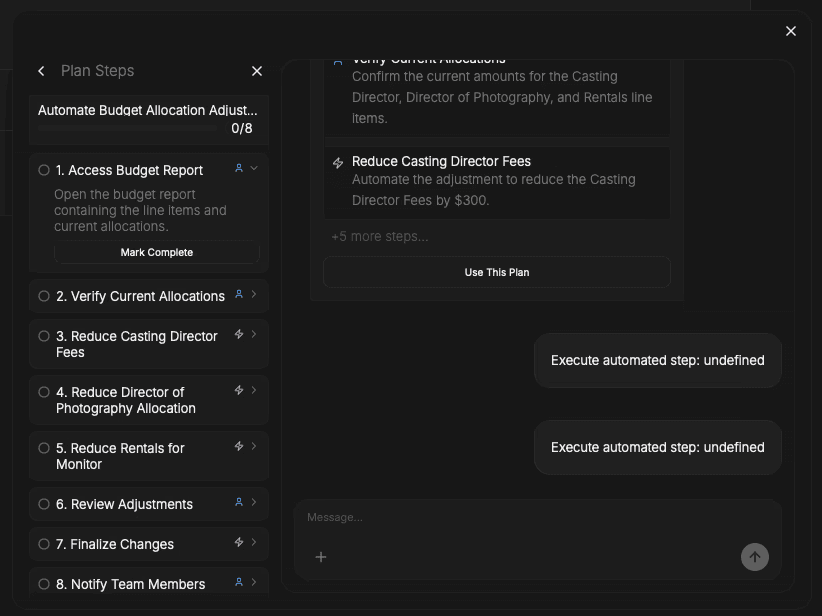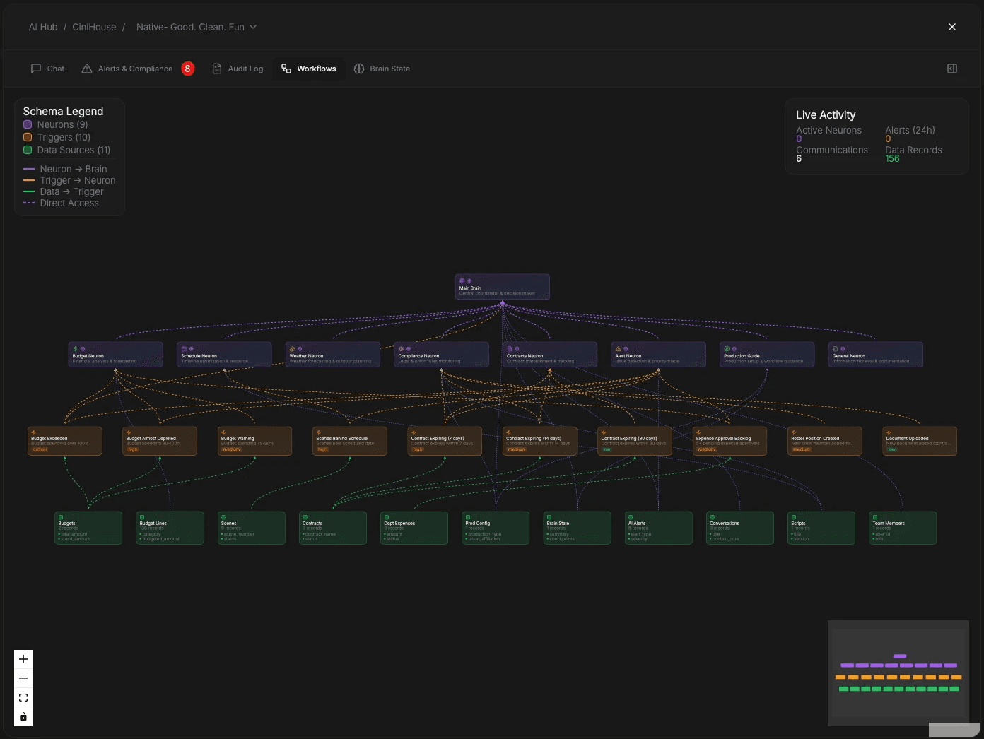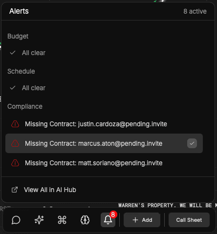 The AI Hub is aware of your production’s live state—budgets, schedules, contracts, teams, rules, and records. It doesn’t guess or hallucinate. It reasons from what actually exists.