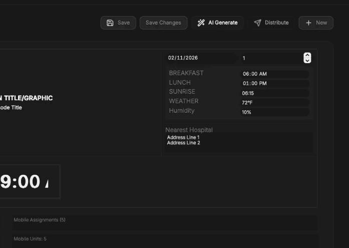 AI reviews scene load, location transitions, and crew timing before the callsheet is issued. It can surface potential timing conflicts and suggest adjustments to organize the day more clearly. Final approval remains with production.