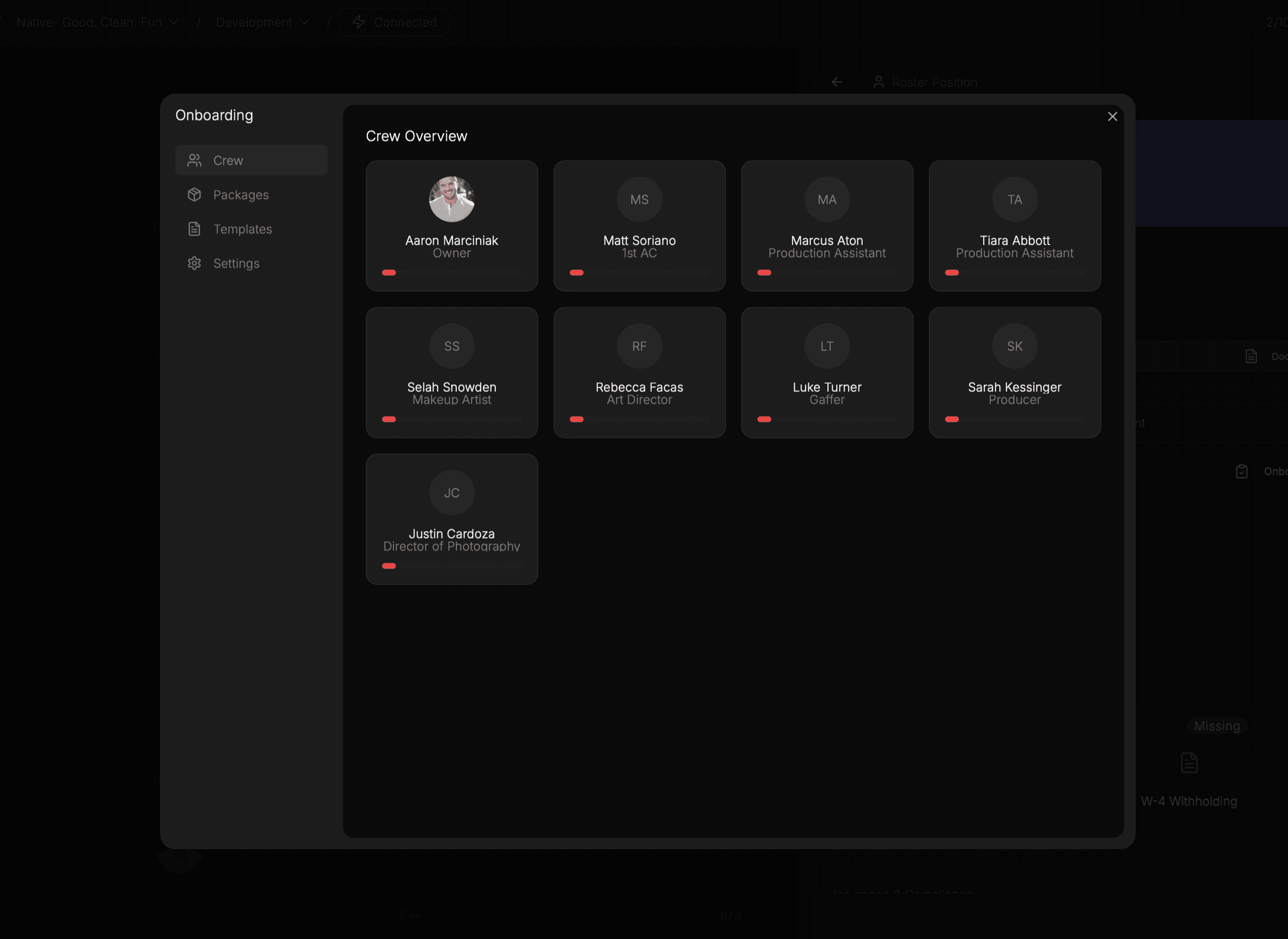 Build onboarding paperwork as packets for the production or individual roles—documents, forms, and signatures—before sending anything out.