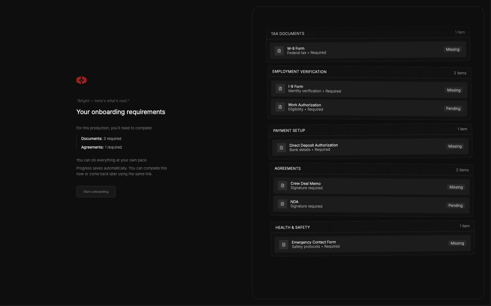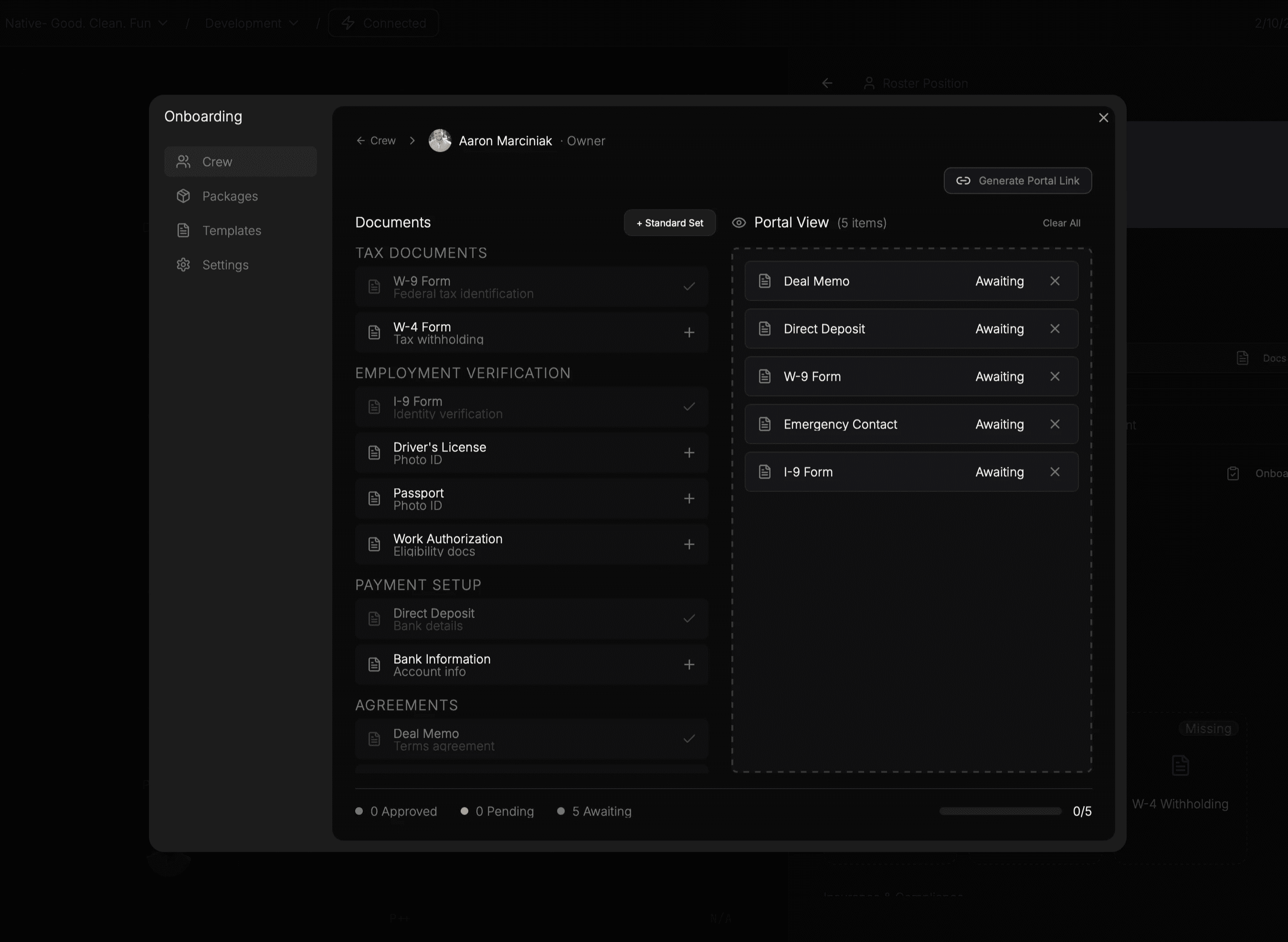 Crew can complete onboarding through the portal whether or not they join the platform. If they do join later, their approved paperwork is already in place.