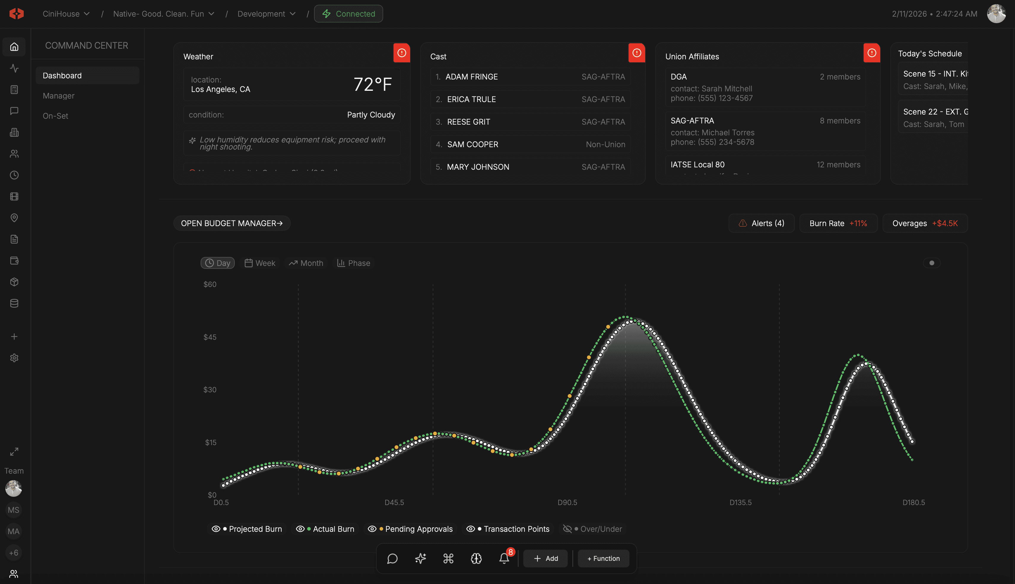 Explore how budgets, contracts, onboarding, and callsheets operate inside structured workspaces.
